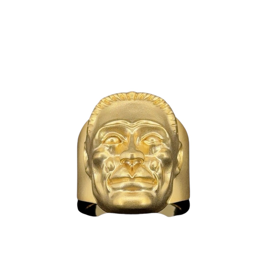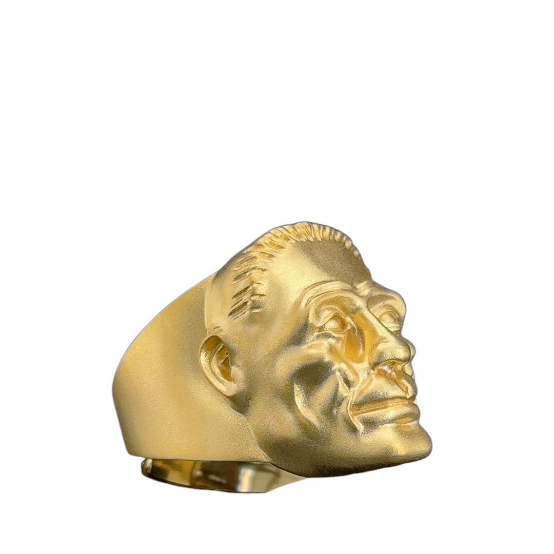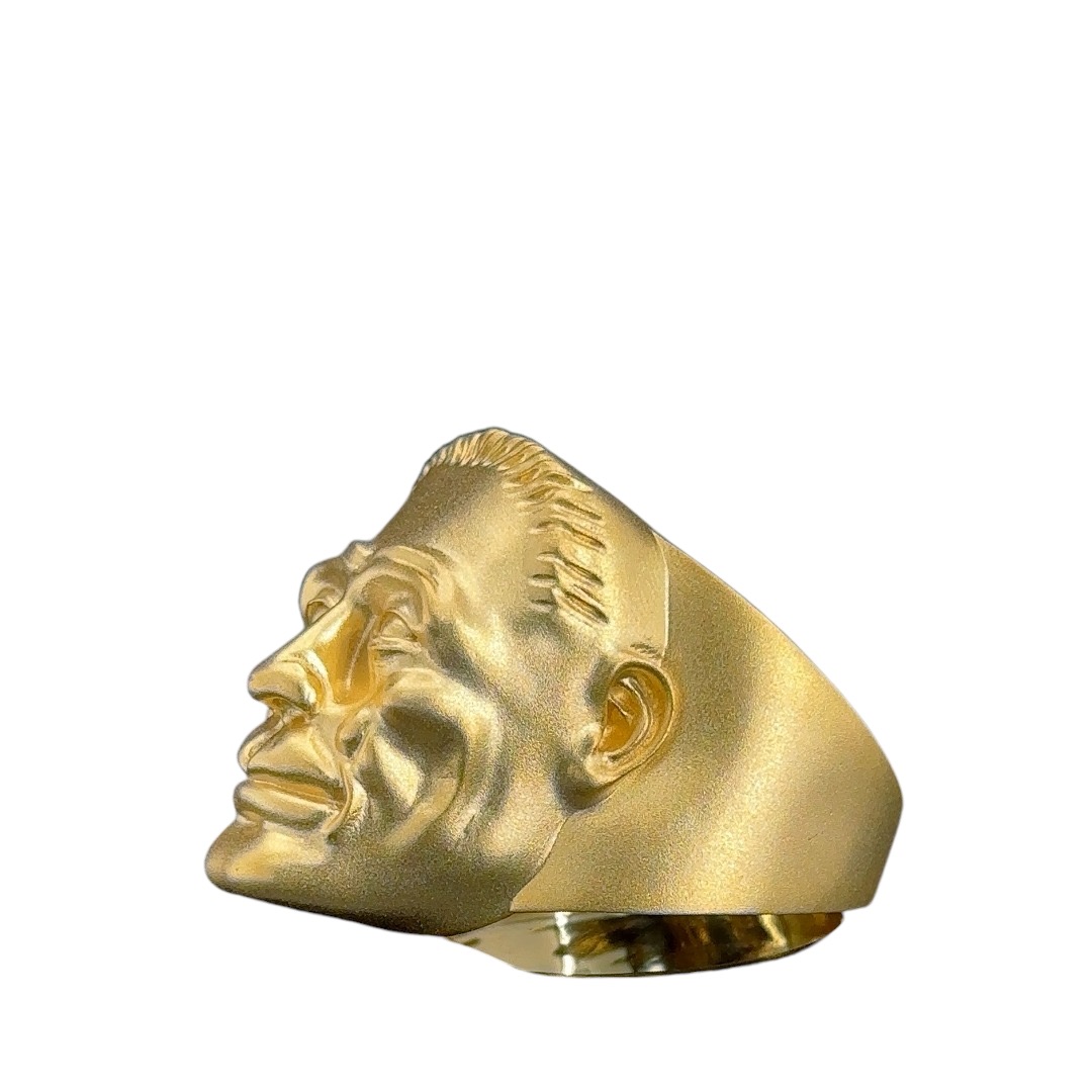 A custom-made 3D face ring in gold—bold, sculptural, and crafted to turn your story into a statement piece. It is designed in real 10k yellow gold.