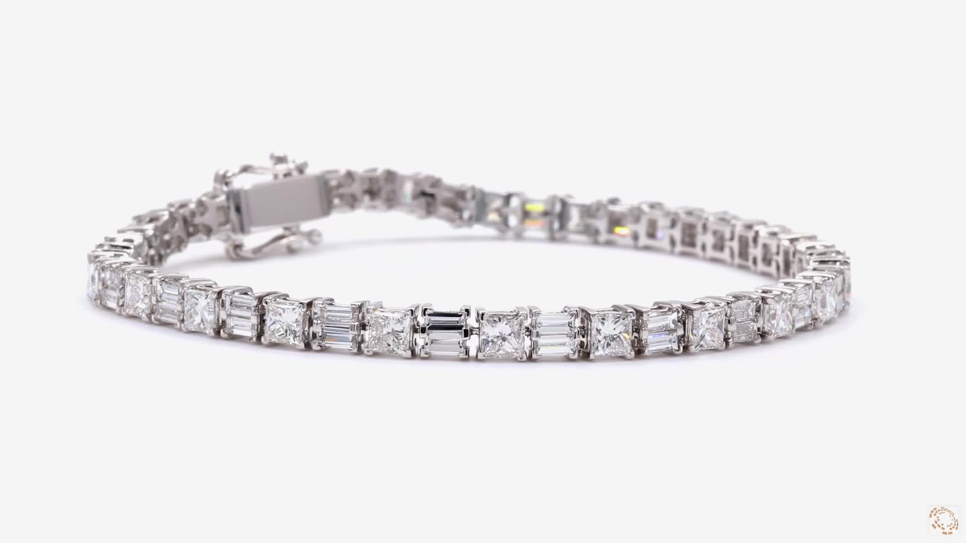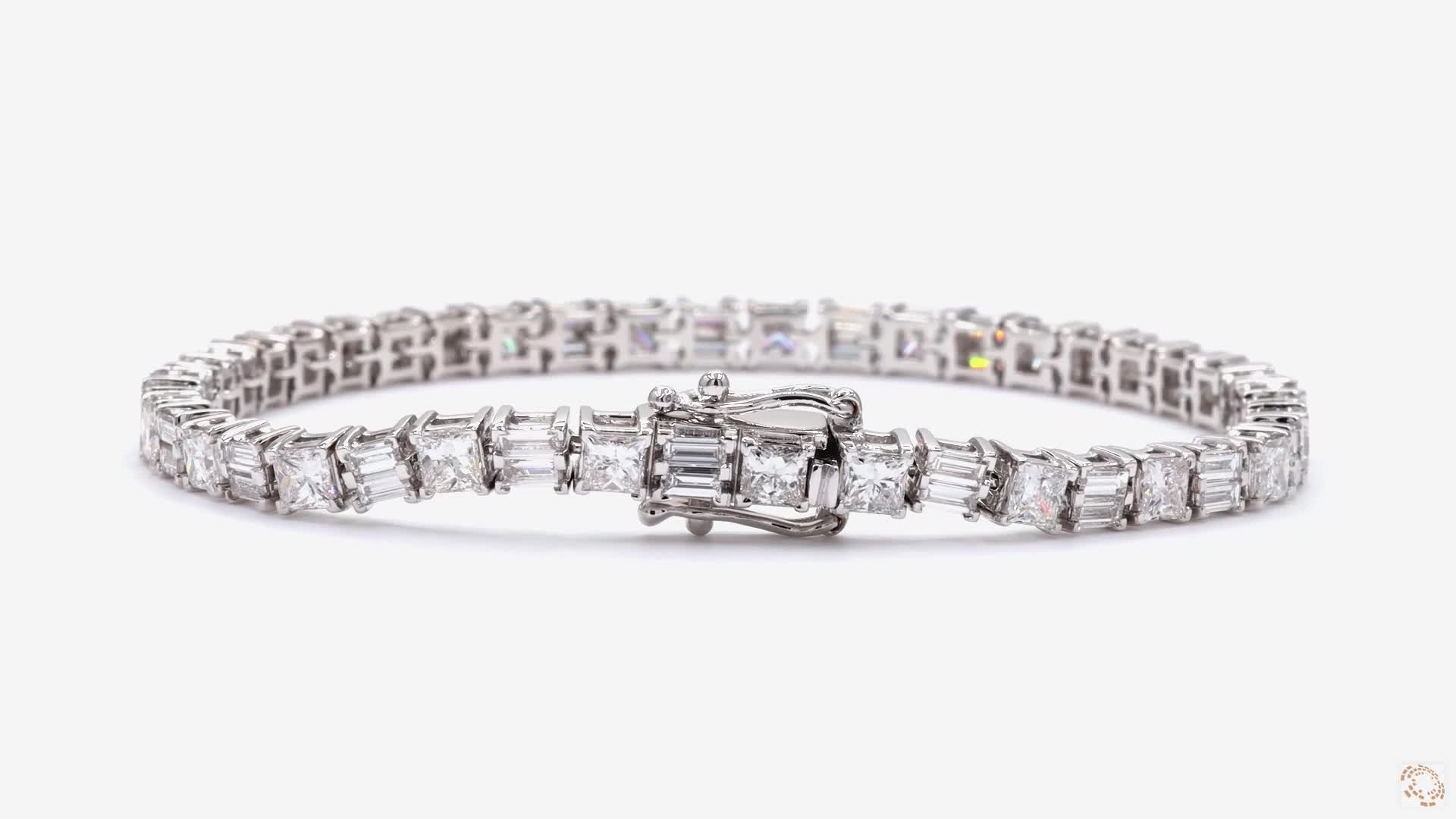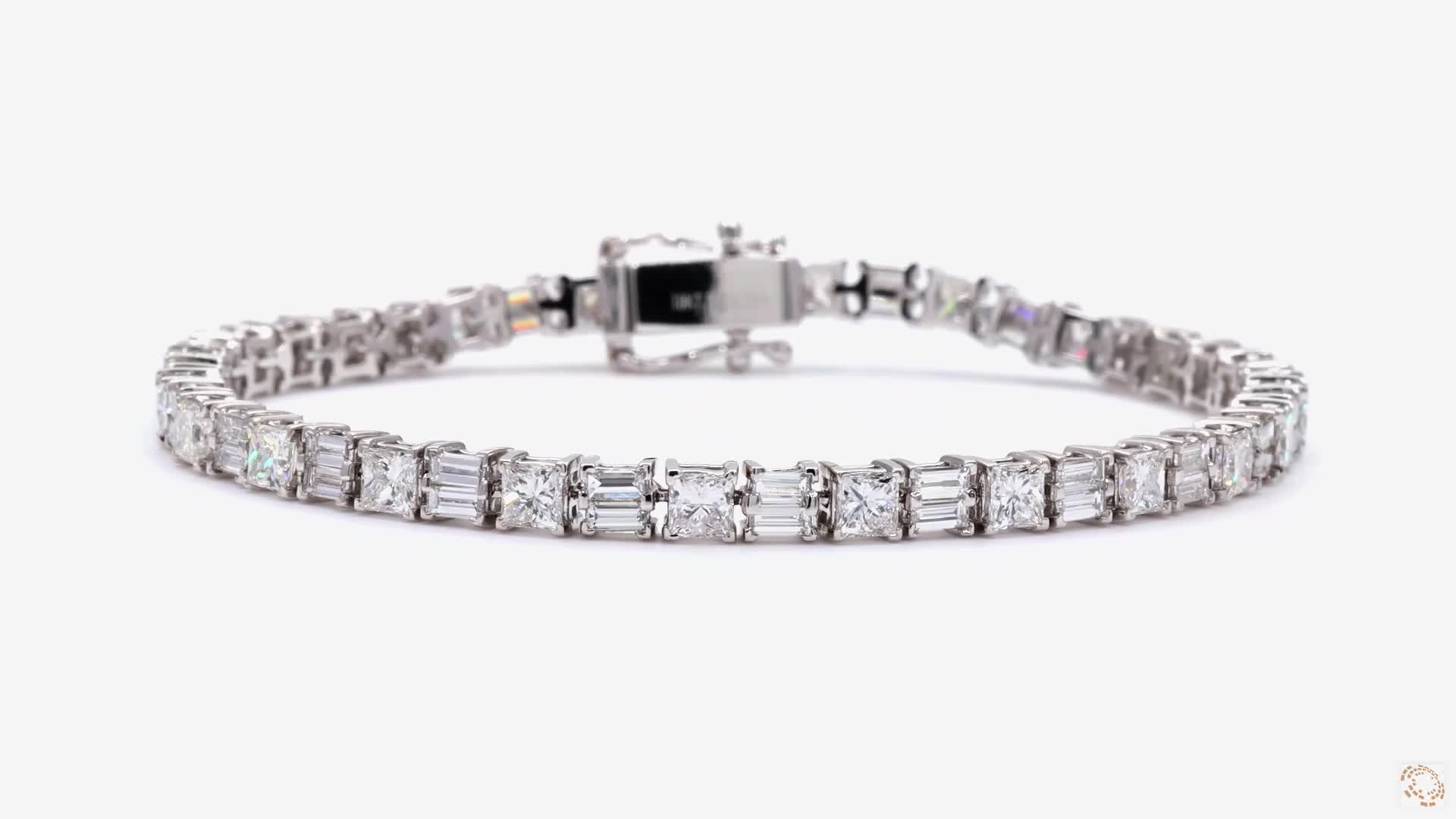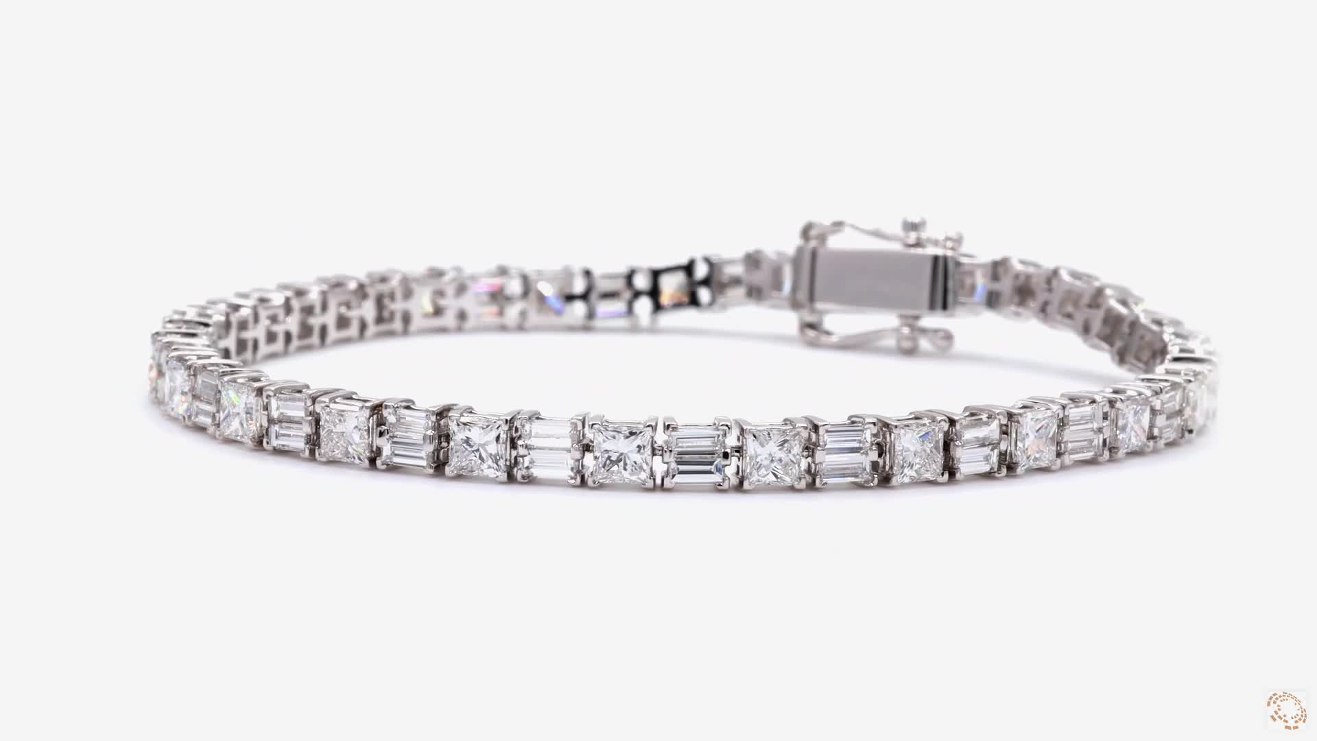 A stunning blend of princess and baguette-cut diamonds set in white gold—sharp lines, radiant sparkle, and modern elegance in perfect harmony. The bracelet is designed in real 14k white gold and Lab grown diamond.