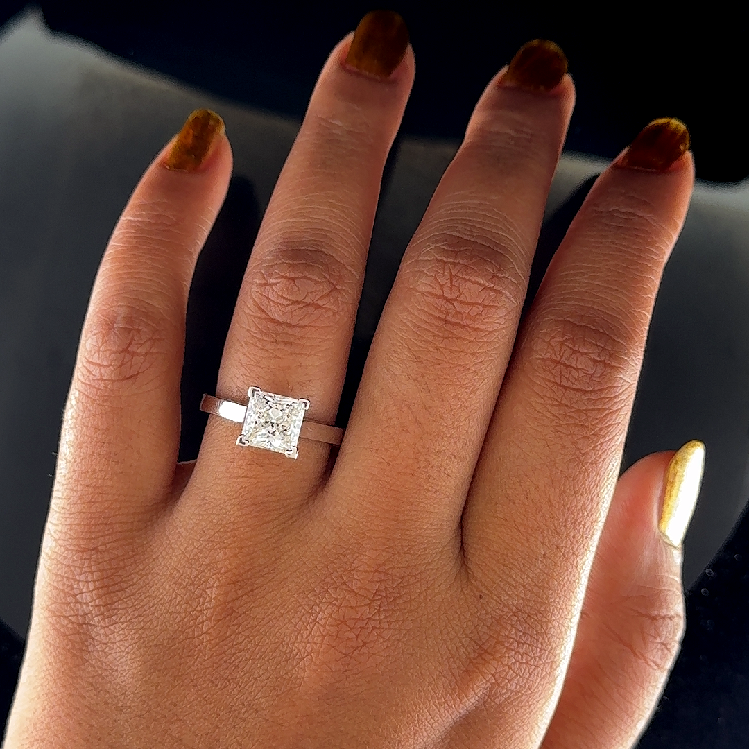 A princess-cut diamond solitaire set in white gold—clean lines, striking brilliance, and timeless elegance in its purest form. The ring is designed in real 14k white gold and Lab grown diamond.
