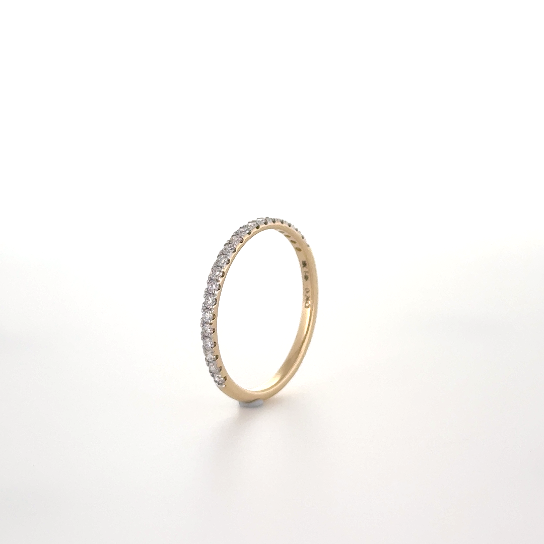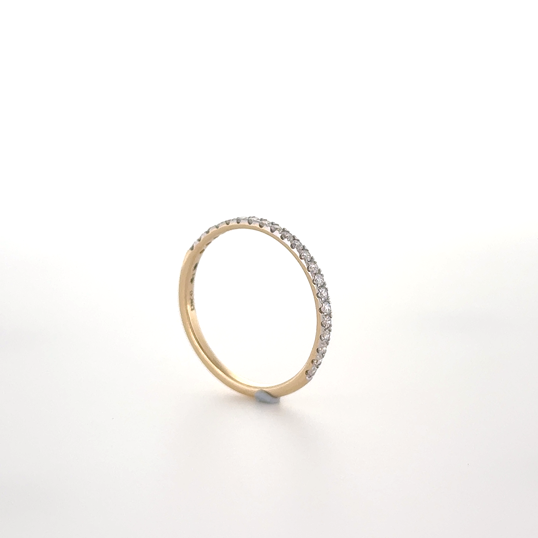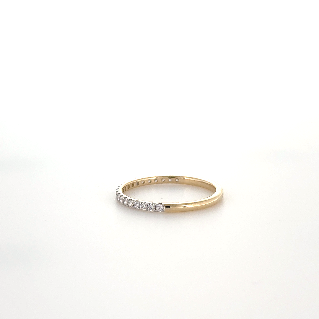 A graceful row of round diamonds set halfway around the band—subtle sparkle with timeless elegance for everyday wear. The ring is designed in real 14k yellow gold and Lab grown diamond.