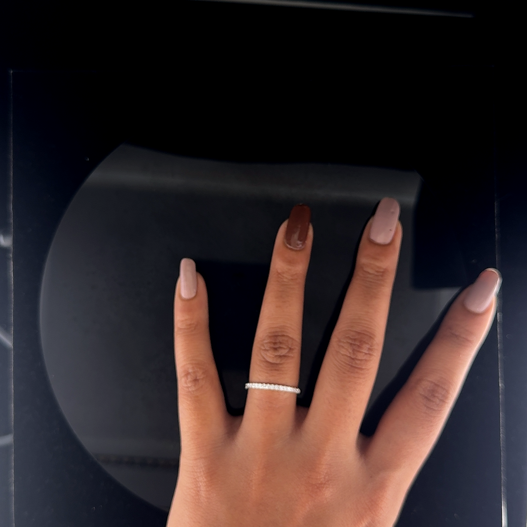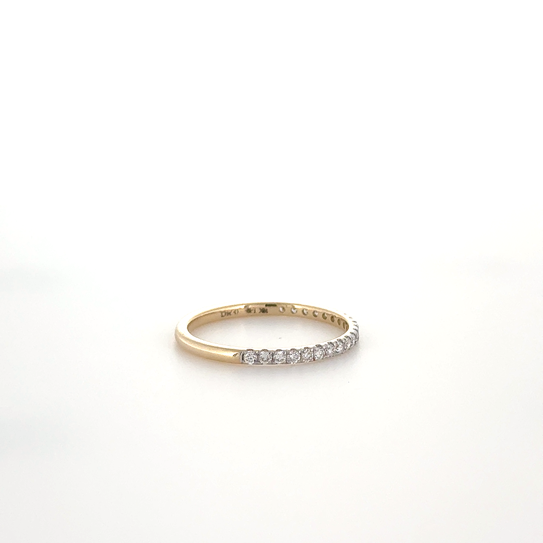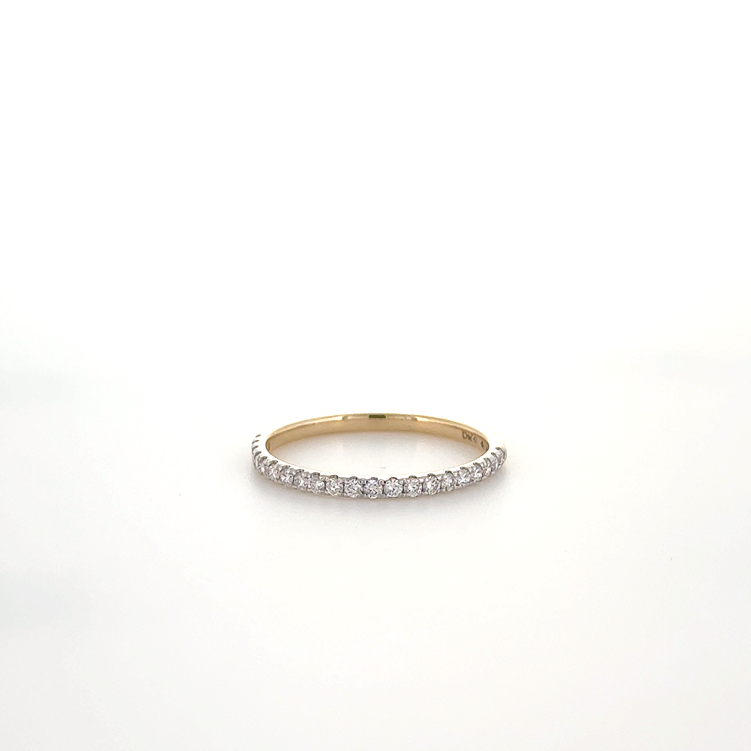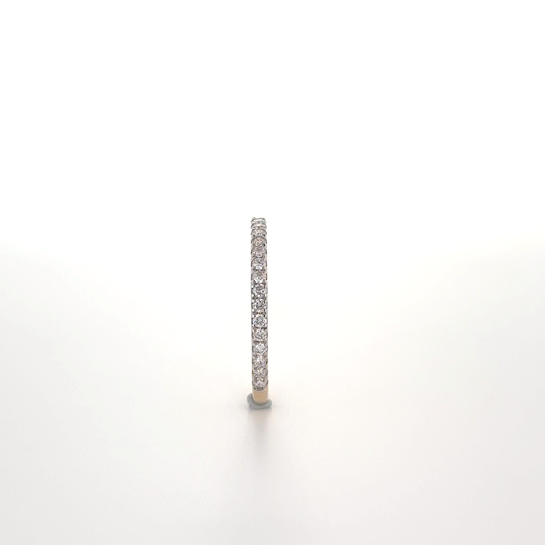 A graceful row of round diamonds set halfway around the band—subtle sparkle with timeless elegance for everyday wear. The ring is designed in real 14k yellow gold and Lab grown diamond.
