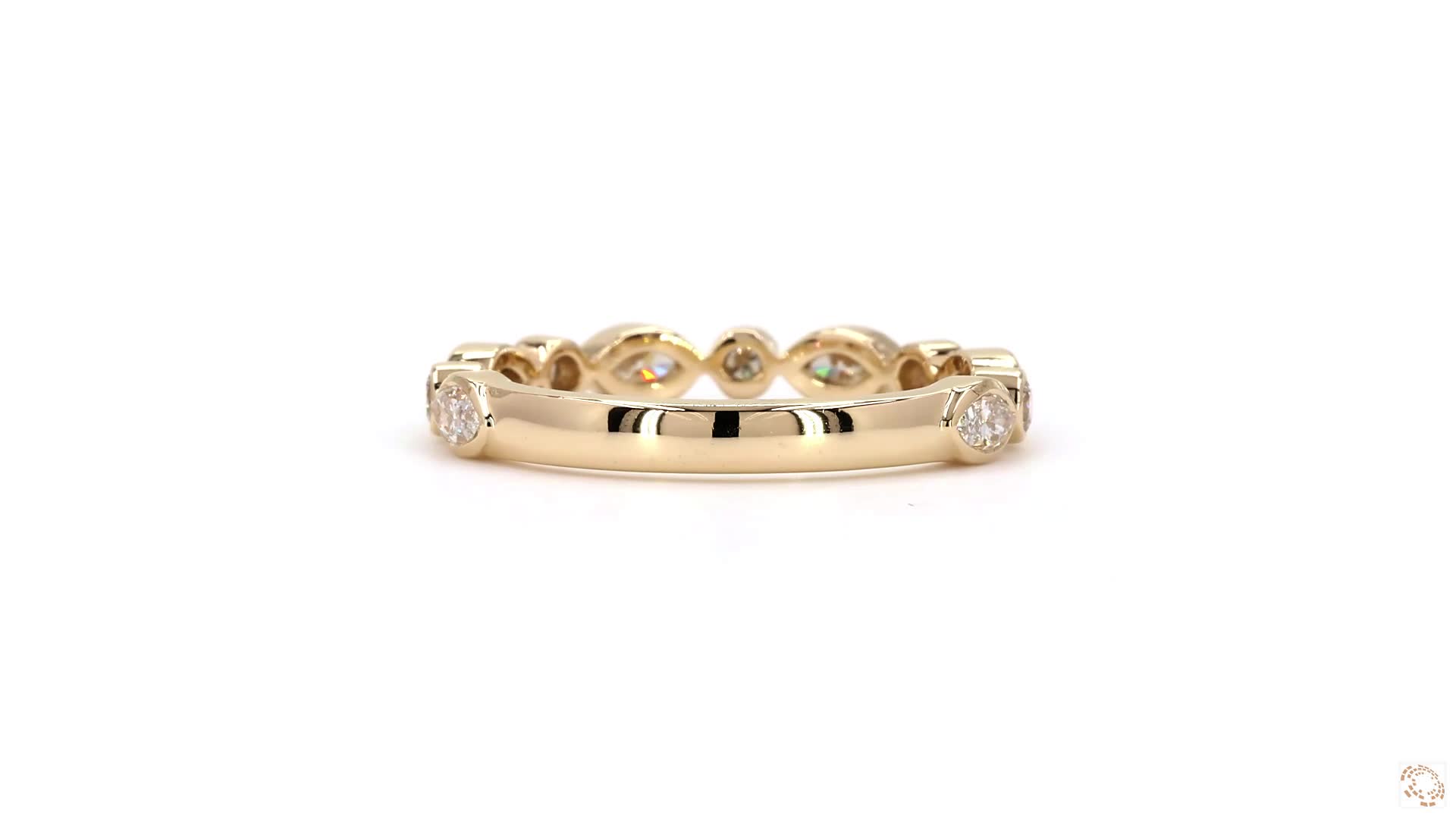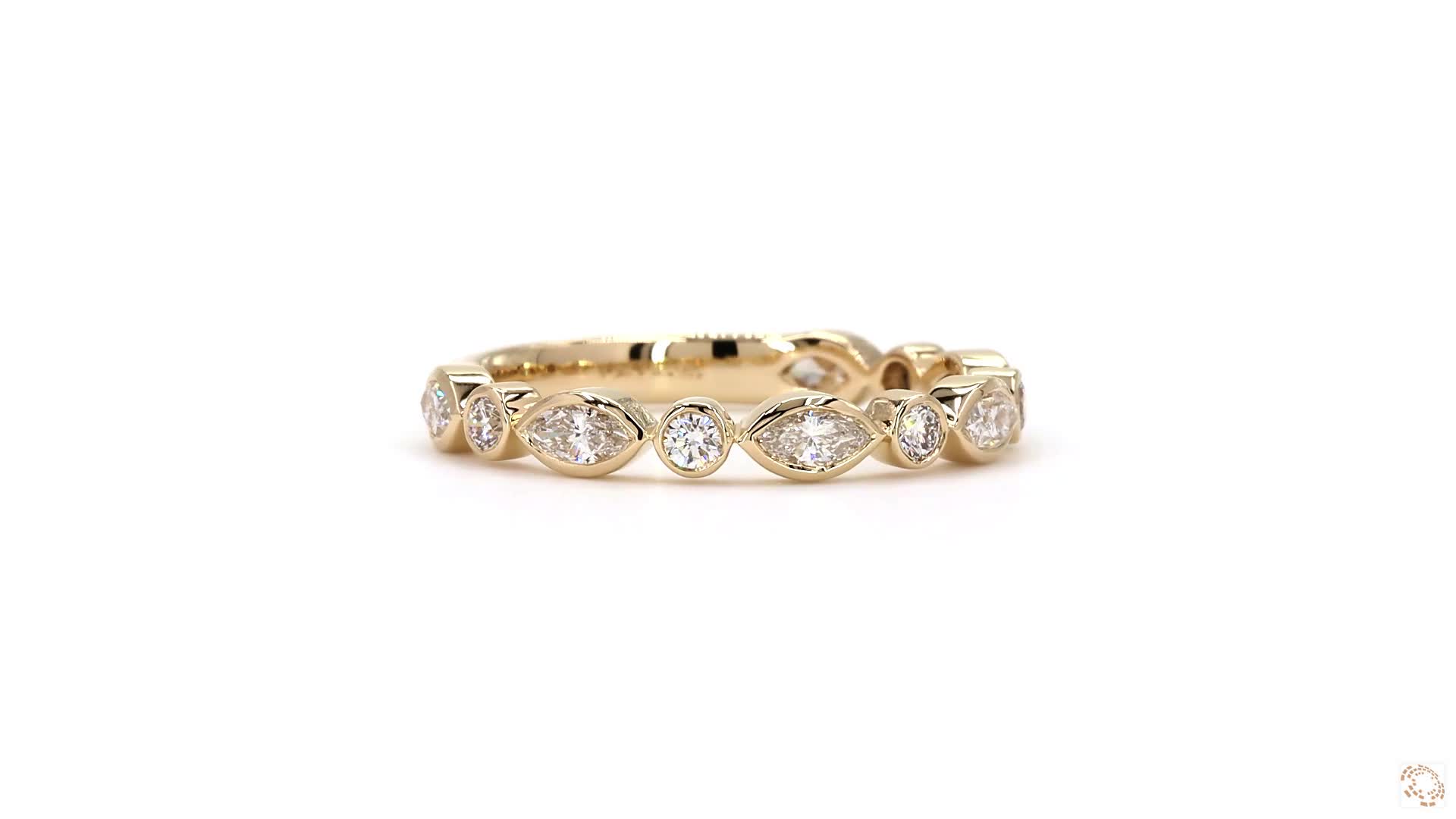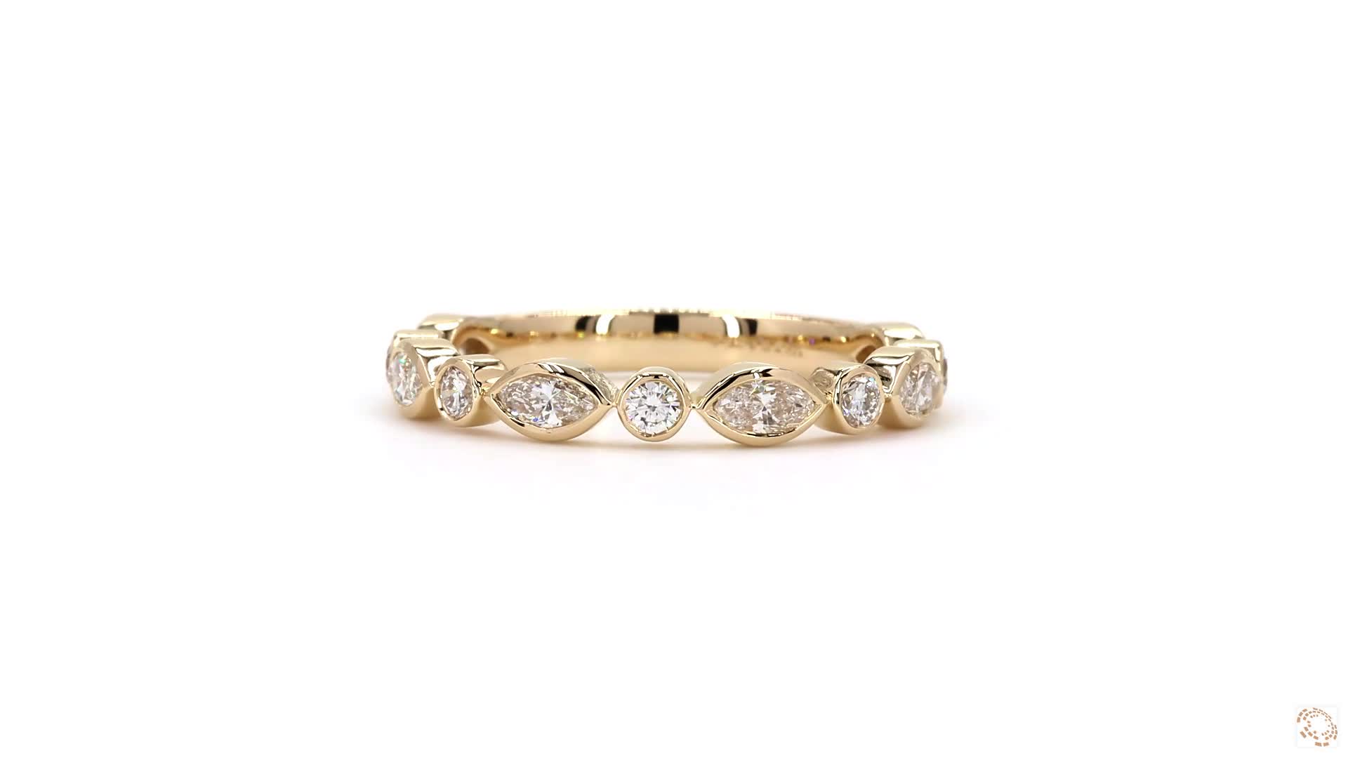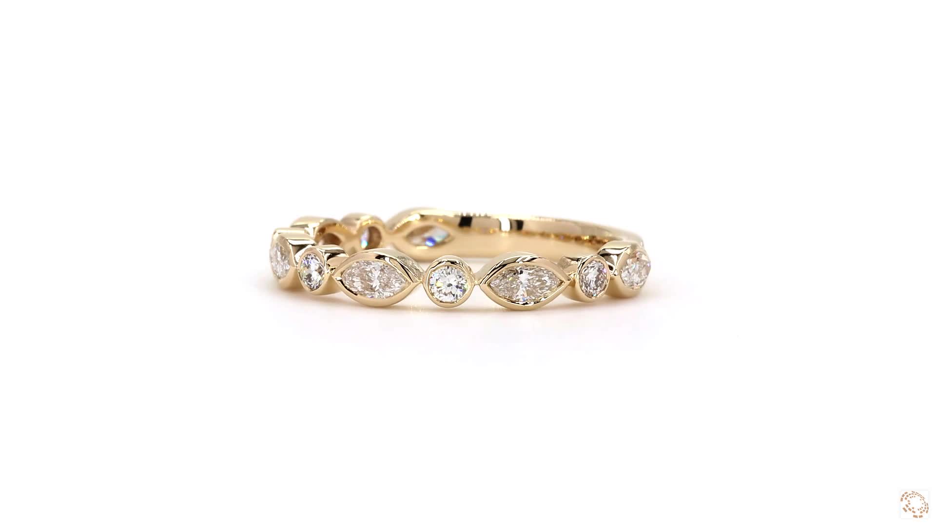 Marquise and round diamonds set in sleek bezels—where modern minimalism meets refined brilliance and effortless style. The ring is designed in real 14k yellow gold and Lab grown diamond.