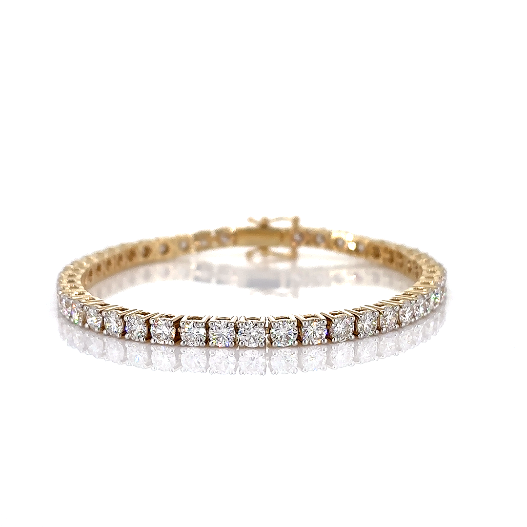 A timeless tennis bracelet of round-cut diamonds set in white gold—endless brilliance that wraps your wrist in pure elegance. The bracelet is designed in real 14k yellow gold and Lab grown diamond.